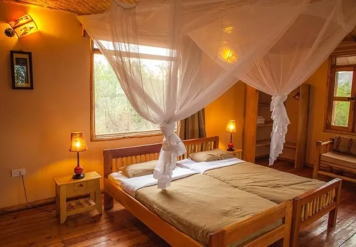 Lodgen består av både stugor och tält, alla charmigt inredda och utrustade med eget badrum och veranda. Endast lokala material har använts, och allt är byggt av lokala hantverkare, vilket gynnar de lokala samhällena i området.
