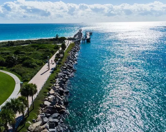 Det rekommenderas starkt att man cyklar längs den nästan 13 kilometer asfalterade cykelvägen som sträcker sig längs Miami Beachwalk. Den erbjuder fantastisk utsikt över stadens karaktäristiska och pastellfärgade art deco-hus på ena sidan och havet på den andra. Det är inte otänkbart att ett dopp i havet kan vara lockande längs vägen eller att du blir sugen på lunch på ett av de många små kaféerna.