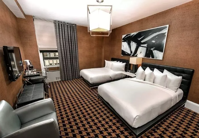 Ameritania Hotel ligger i en välbevarad och historisk Beaux-Arts byggnad från 1902, som kontrasterar vackert med sin moderna inredning. Hotellet har totalt 228 moderna rum inredda i varma färger. Varje rum är utrustat med faciliteter som gratis Wi-Fi, TV, minikyl, värdeskåp och separat badrum med hårtork och regndusch. Om du inte har registrerat tillräckligt många steg på din stegräknare kan du komplettera med ett besök på hotellets gym.