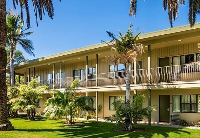 Vid San Diegos vackra kustlinje hittar du charmiga Bahia Resort. Här får du ett perfekt läge mellan stranden Mission Beach och den vackra bukten Mission Bay.