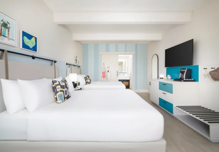 Blue Flamingo Resort Key West har 100 ljusa och luftiga rum inredda i modern stil. Rummen har sängar och väggbeklädnader av återvunnet trä, vilket ger en trevlig och avslappnad atmosfär. Alla rum har TV, wifi, kaffebryggare, minibar, luftkonditionering och eget badrum med hårtork och badrockar.
