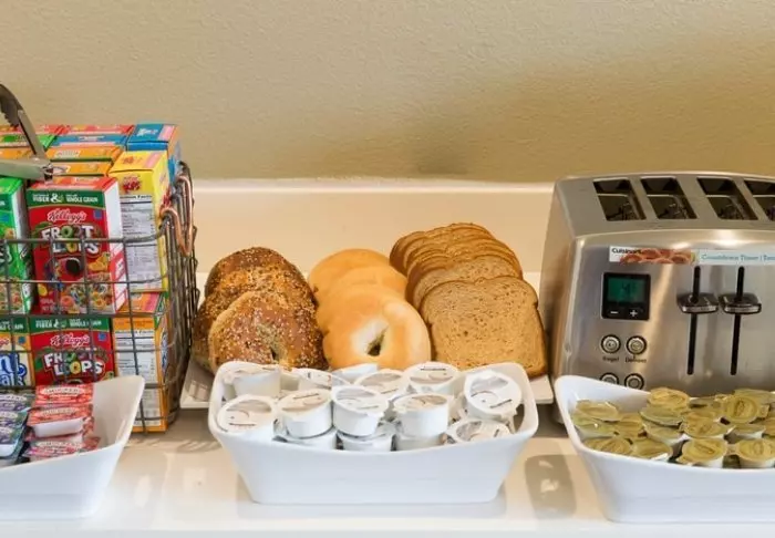 I det gemensamma sällskapsrummet kan du starta dagen med en kopp kaffe och en enkel kontinental frukost.