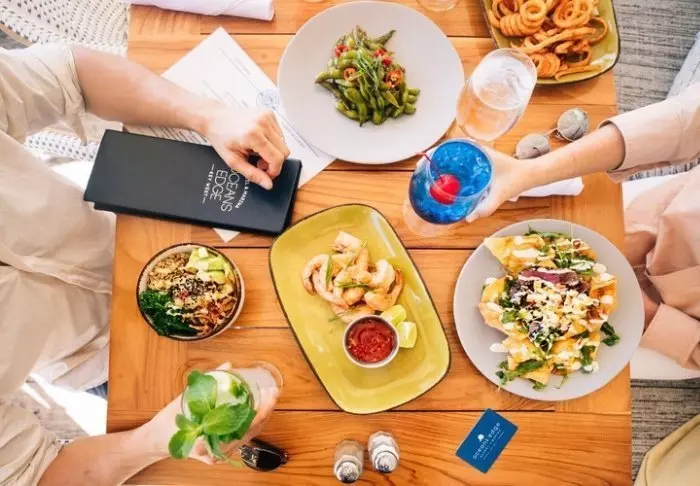 Oceans Edge Resort & Marina är byggt i en vacker karibisk stil, ett utseende som kännetecknar hela resorten, både på in- och utsidan. De vita trähusen ger en vacker kontrast mot de gröna oaserna, och här finns så många som sex uppvärmda saltvattenpooler. Medan du ligger i vattnet och känner lugnet komma kan du njuta av ljudet av vajande palmer och vågor som slår mot båtarna i marinan i bakgrunden.