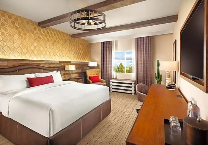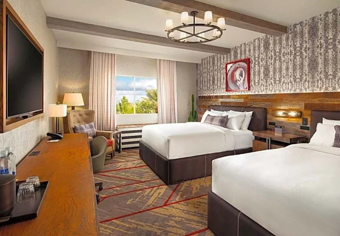 Cirka 8 km från den livliga gatan Las Vegas Blvd. ligger Silverton Casino Lodge, som till skillnad från stadens många temahotell är byggt i mindre skala och inspirerat av Vilda Västerns rustika stugor. Helt rustikt är det dock inte inomhus – här finns moderna bekvämligheter som gör att du kan slå dig ner, koppla av och njuta av allt du behöver inom räckhåll. Även om det inte är ett utpräglat temahotell finns det ändå möjlighet till en kväll i äkta Vegas-stil på hotellets kasino. Om du känner för att pröva lyckan på en enarmad bandit finns alla möjligheter till det. Du kan också roa dig med en omgång bowling eller ta en promenad förbi det imponerande saltvattensakvariet med tropiska fiskar.