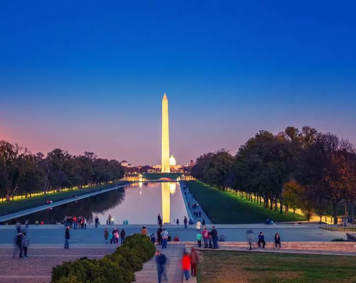 Denna kväll rekommenderar vi att du avslutar dagen med en trevlig middag i det charmiga området Georgetown, följt av ett stopp vid den reflekterande poolen vid Lincoln Memorial, som lyser vackert i mörkret.