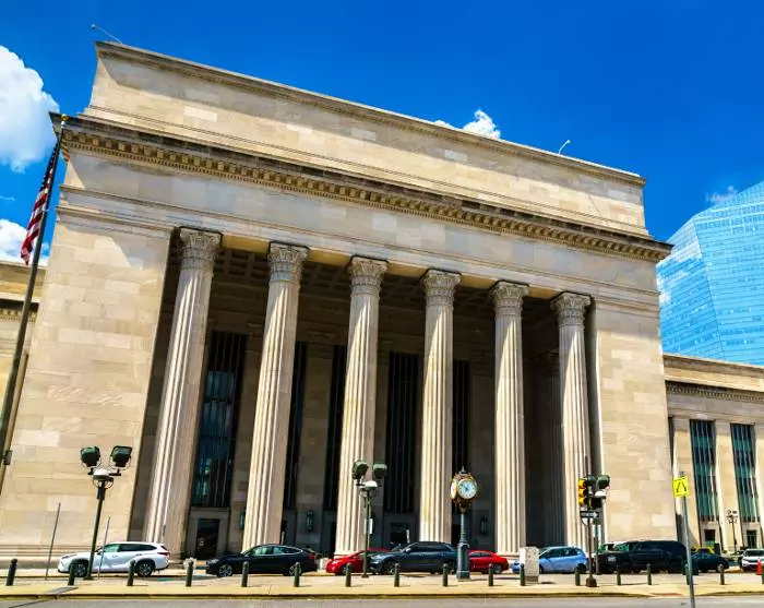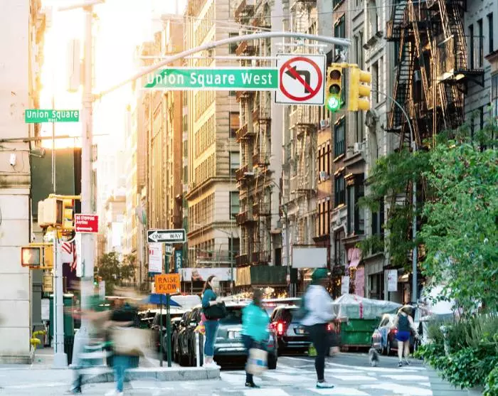Du lämnar Philadelphia från samma tågstation som du anlände till*, och bara 1,5 timmar senare går du av tåget på Penn Station och befinner dig mitt bland New Yorks livliga gator.