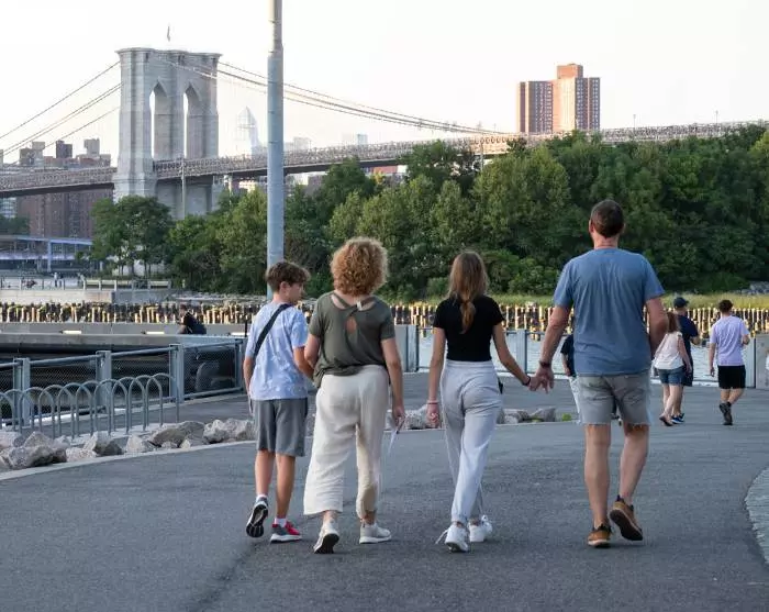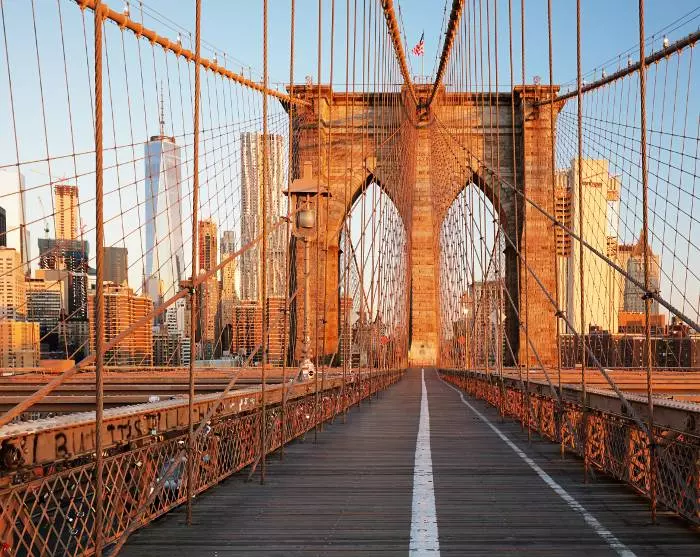 Det rekommenderas starkt att man går eller cykla den vackra sträckan till stadsdelen Brooklyn via den berömda kärleksbron, Brooklyn Bridge, och eventuellt återvända via Manhattan Bridge. På Brooklyn-sidan kan du njuta av en förfriskning med utsikt över staden från området DUMBO, som ligger mellan de två broarna.