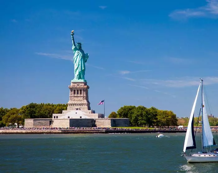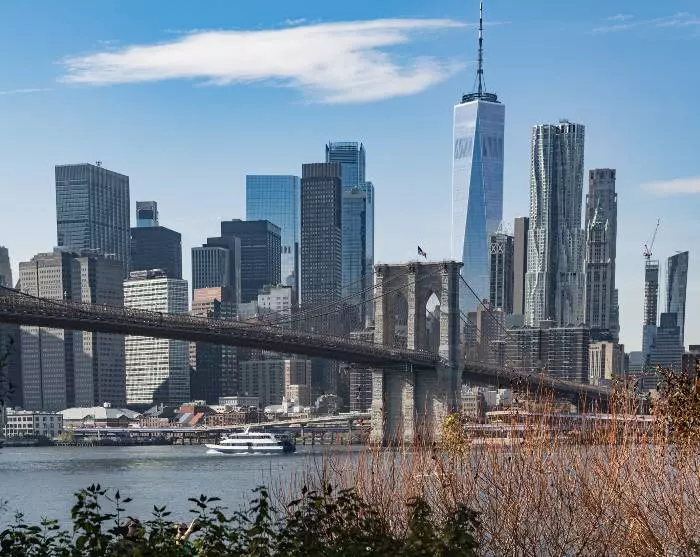 Någonstans vid horisonten kommer du att börja ana ett av Amerikas mest ikoniska landmärken: Frihetsgudinnan. Statyn donerades av Frankrike till USA 1885 för att hedra de två ländernas allians under den amerikanska revolutionen och för att uppmärksamma Amerika som ett land som kämpar för frihet. Hon blev senare en symbol för frihet och hopp för de nyanlända som kom till New York sjövägen. Från Frihetsgudinnan fortsätter kryssningen förbi One World Trade Center och vidare under historiska Brooklyn Bridge och Manhattan Bridge. Härifrån får du en fantastisk utsikt över New Yorks skyline. Först när du ser skyskraporna på avstånd kan du verkligen förstå deras enorma storlek. Utflykten slutar där den började, och när du nu har fått en översikt över staden, kanske det finns platser som du också vill besöka på land. Det är helt upp till dig, för du bestämmer själv vad du vill göra resten av dagen.