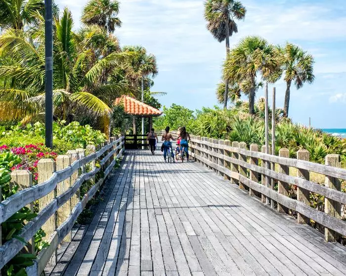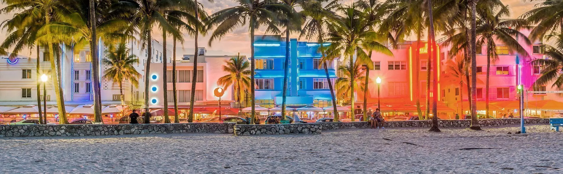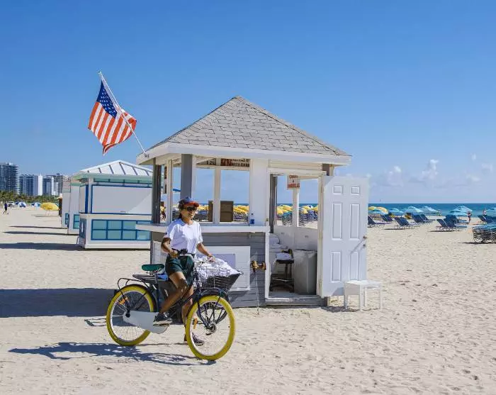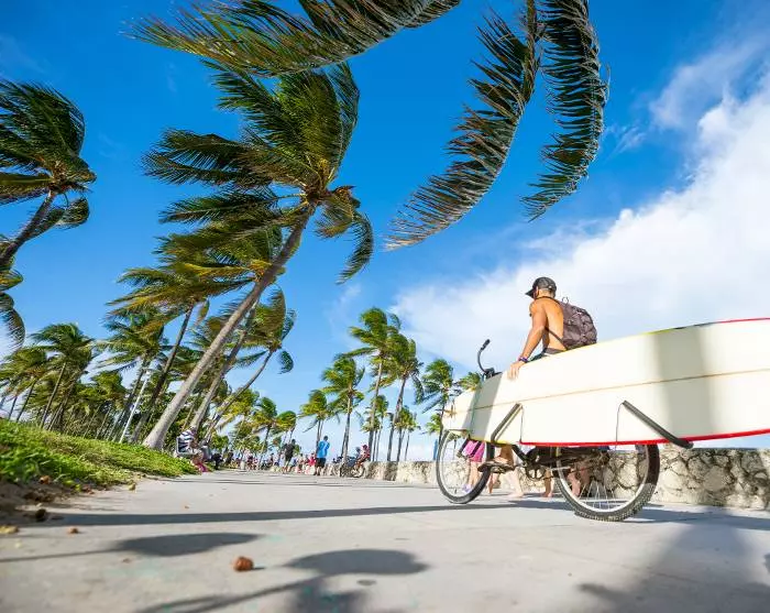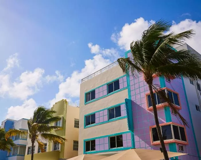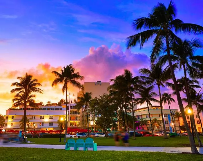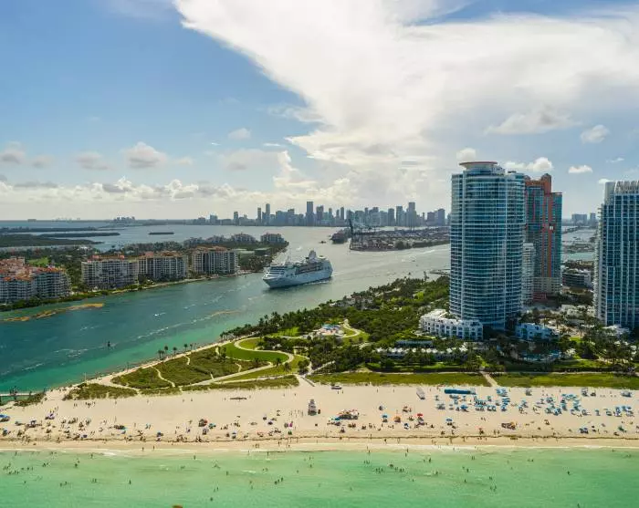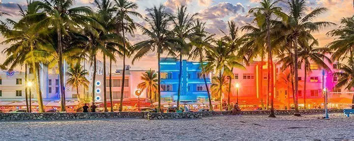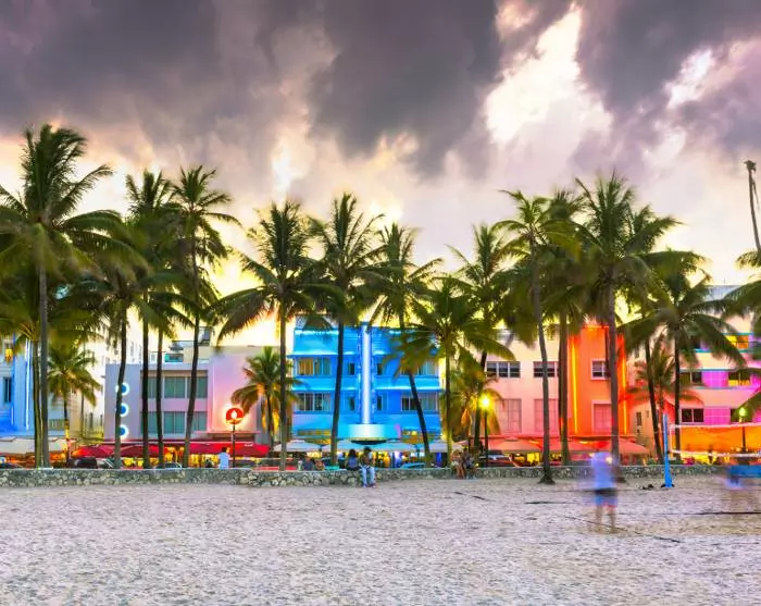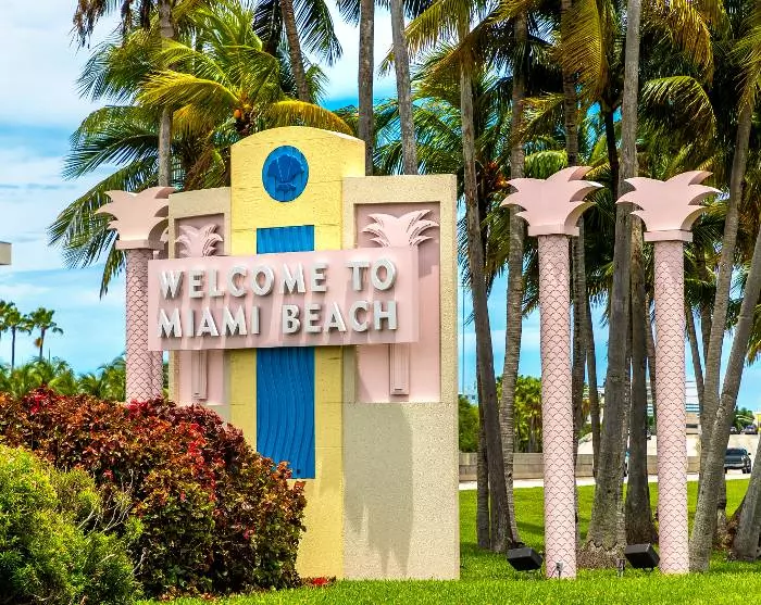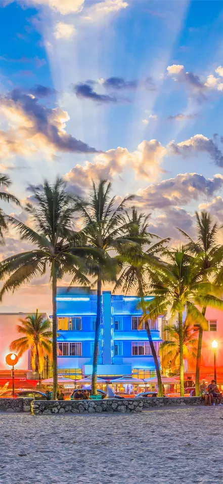 Du kommer omedelbart veta att du närmar dig Miami när den vidsträckta havsutsikten byts ut mot ett urbant landskap med höga byggnader, stora bilar och kryssningsfartyg. Du kommer att bo i Miami Beach, som är känt för sina färgglada art deco-hus, dess strand och butikerna längs berömda Collins Avenue.