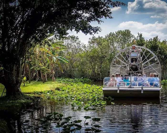 I Everglades National Park kommer du att få känna på spänningen av att nästan sväva ovanpå vattnet i de ikoniska svävarna när du drar fram tillsammans med din guide och dina medpassagerare. Den cirka 30 minuter långa guidade rundturen ger dig en inblick i ekosystemets flora och fauna i den mer än 6000 km2 stora nationalparken. I parken finns alligatorer, krokodiler, svartbjörnar, grodor, ormar och fler än 360 fågelarter.