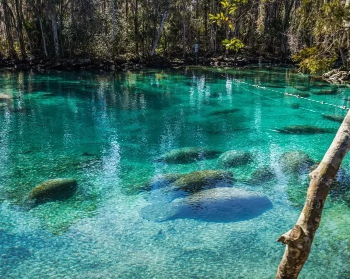 Idag är inget undantag, och du kan välja att stanna till i den lilla staden Crystal River, där du kan se de stora och lugna manaterna – även kända som sjökor. När havstemperaturen sjunker i Mexikanska golfen under vintermånaderna, simmar hundratals manater till de varma källorna vid Three Sisters Springs. Här finns över tre kilometer med gångvägar där du kan titta på de stora djuren när de långsamt simmar vid ytan, och vid vissa tider på dagen är det också möjligt att hyra en kajak och paddla riktigt nära dem (måste bokas på plats). Manaterna kan ses på flera olika platser i Florida, men vid Three Sisters Springs är de vanligtvis samlade i flockar och lätta att se.