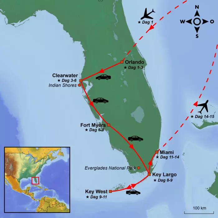 Idag ger du dig ut på den sista delen av din roadtrip, och resan tillbaka till fastlandet är inte mindre vacker när man kör norrut. Om det var något du missade på väg till Key West, har du nu möjlighet att besöka de platser som du missade innan du kommer fram till Miami.