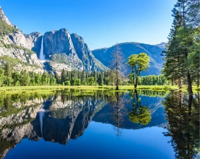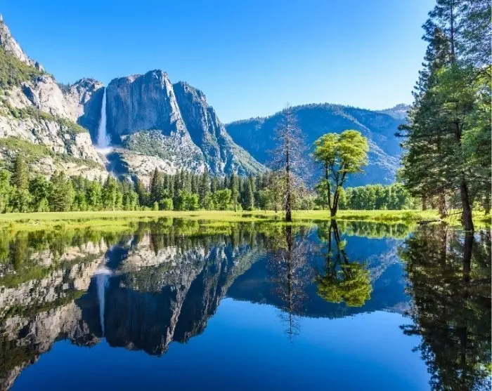I Yosemite Valley finns det även möjlighet att hyra en cykel, och du kan använda de asfalterade cykelvägarna för att cykla från ett vattenfall till nästa, medan du njuter av utsikten över de enorma klippväggarna och träden runt dig. Ett bra ställe att njuta av ett mellanmål är vid den lilla sandsträckan vid Swinging Bridge Picnic Area, där du har utsikt över vattenfallet Yosemite Falls.