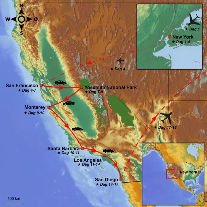 Du checkar ut från ditt hotell och bokar en taxi eller en Uber till flygplatsen i New York. Hotellet kan också hjälpa dig att boka transfer till flygplatsen. Du hittar information om vilken flygplats, avgångsterminal och avgångstid på din resplan. Från New York flyger du västerut till San Francisco, som ligger i norra änden av delstaten Kalifornien.