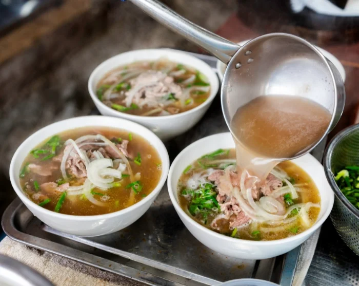 Härifrån promenerar du vidare genom smala gränder och provar dig fram: krispiga nem ran (vårrullar), världsberömd pho (nudelsoppa), söta banh ran (friterade riskakor) och frasigt stekta kycklinglår. Längs vägen passerar du Hang Ma Street, där du får en inblick i det lokala vardagslivet och kulturen, innan du fortsätter till det stämningsfulla bambuhörnet – ett litet gathörn fyllt med bambuprodukter och lokal puls.