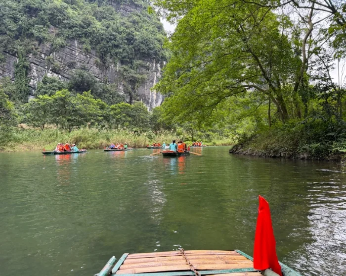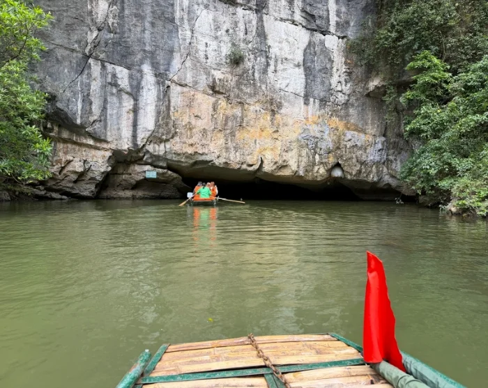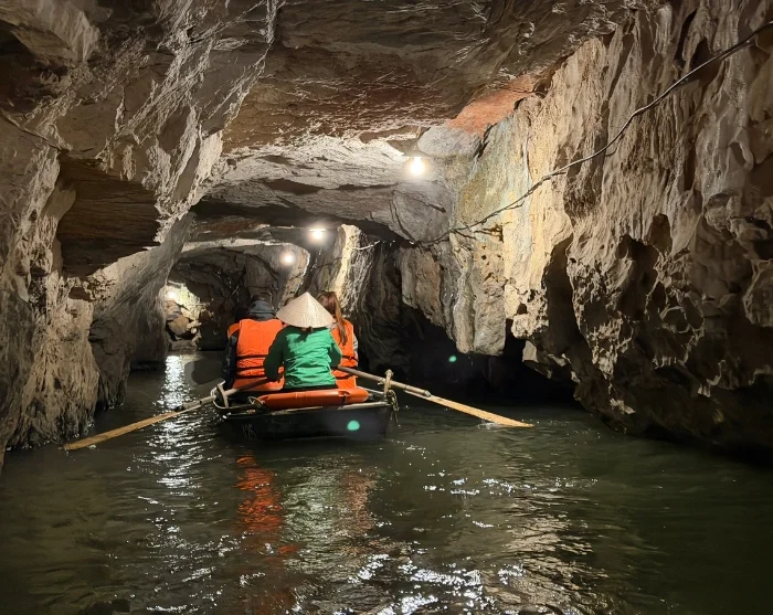 Du kliver ombord på en traditionell sampan som sakta ror sig fram längs floden genom ett nätverk av grottor och kalkstensgrottor, däribland Lam Cave, Vang Cave, Dai Cave och Thanh Truot Cave. Under turen passerar du även templen Cao Son, Suoi Tien och Vu Lam samt Skull Island, som användes som inspelningsplats för filmen ”Kong: Skull Island” år 2017.