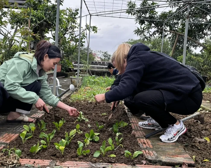 I byn Mai Trung besöker du en lokal familj som välkomnar dig in i sitt hem. Här får du en inblick i livet på landsbygden. Du deltar i säsongsbetonade aktiviteter som arbete i risfälten, trädgårdsarbete eller matning av fiskar och fjäderfä. Uppgifterna ger en autentisk inblick i vardagen inom det vietnamesiska jordbruket.