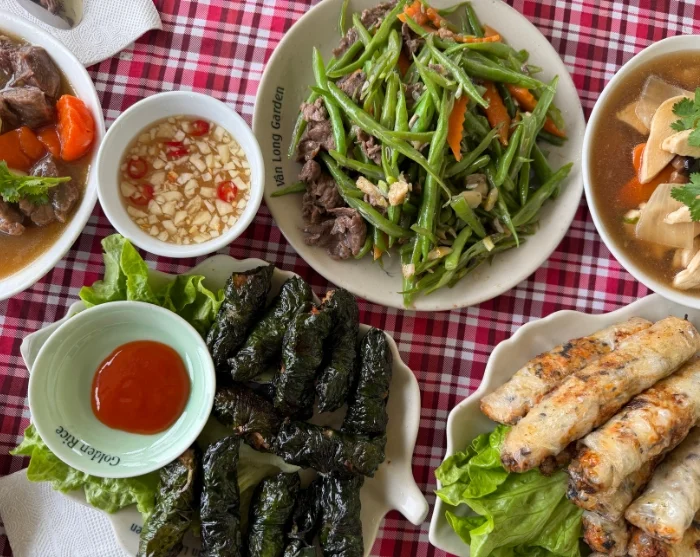 Efter besöket bjuder familjen in dig i köket för en avslappnad matlagningskurs. De introducerar dig till det vietnamesiska köket och du får själv vara med och tillaga rätterna. Upplevelsen avslutas med en hemlagad lunch som avnjuts i familjens varma och avspända miljö.