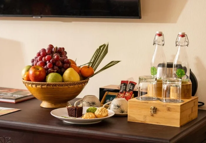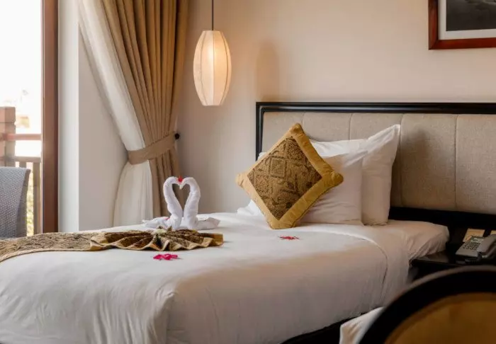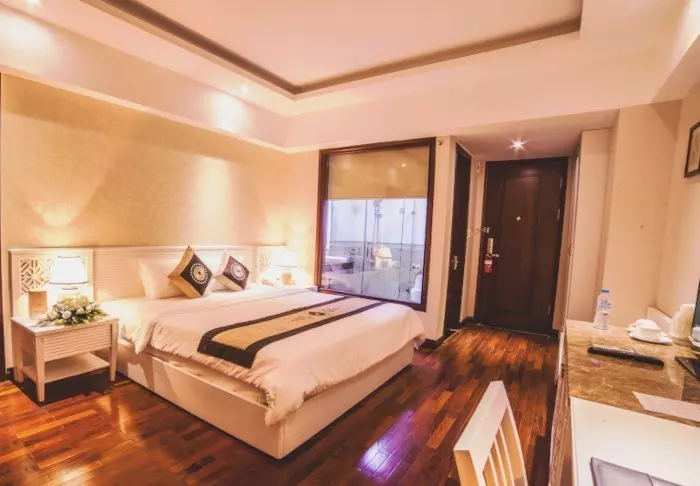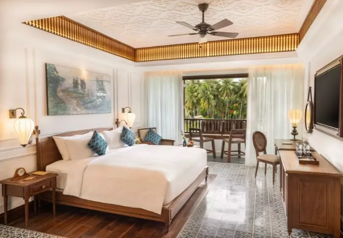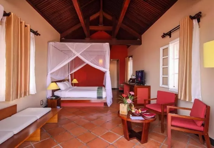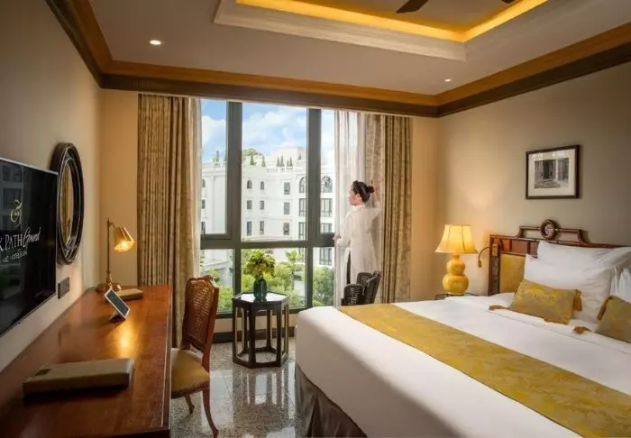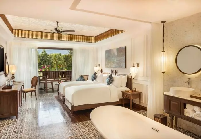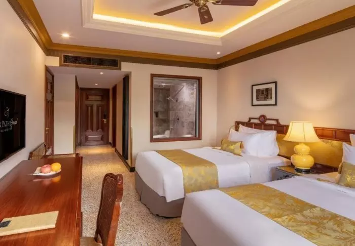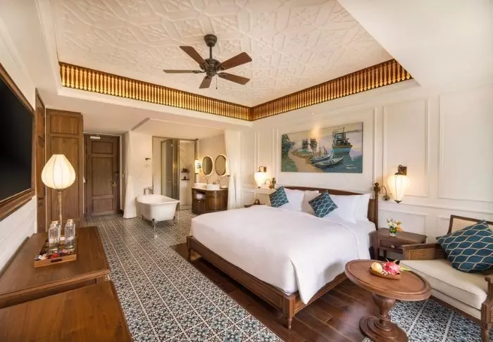 Du bor som utgångspunkt i ett superiorrum, inrett i vietnamesisk stil med mörka trämöbler som skapar en varm och inbjudande atmosfär. Rummen är utrustade med moderna bekvämligheter såsom aircondition, wifi, minibar, kaffe- och tefaciliteter, värdeskåp och platt-tv, så att du har allt du behöver för en bekväm vistelse. Badrummet har dusch, badrock, hårtork och toalettartiklar.