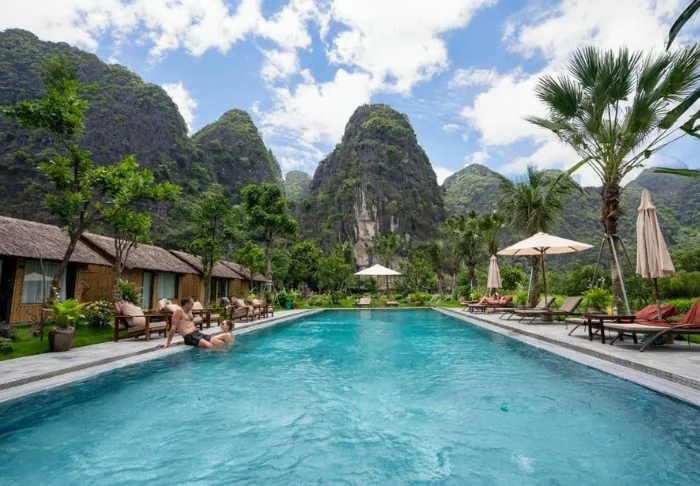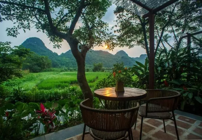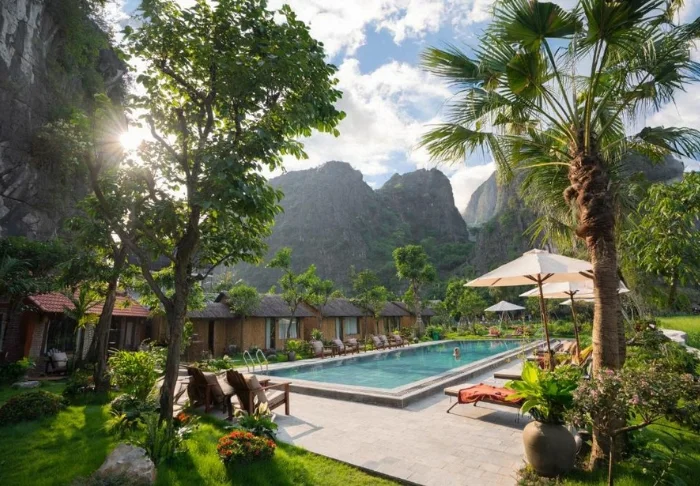 Bland frodiga risfält, kalkstensklippor och ringlande floder ligger Tam Coc Garden Resort. Här kan du dra dig tillbaka och njuta av Ninh Binhs enastående natur, som imponerar på de flesta.