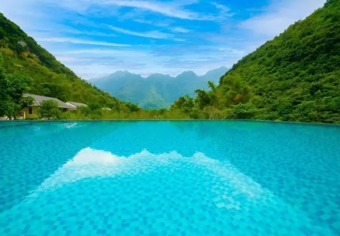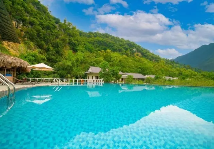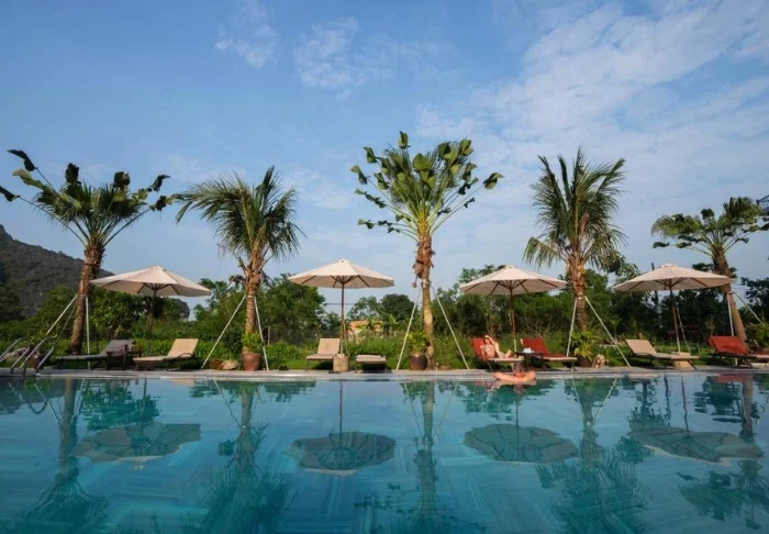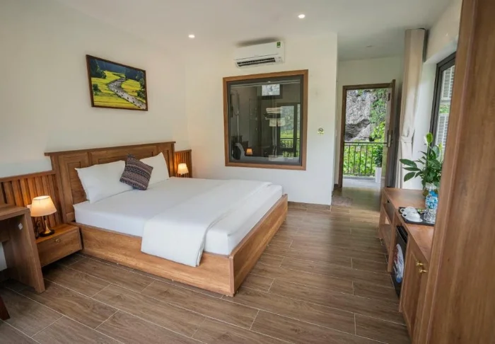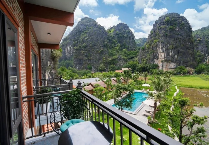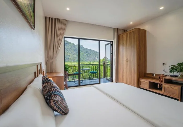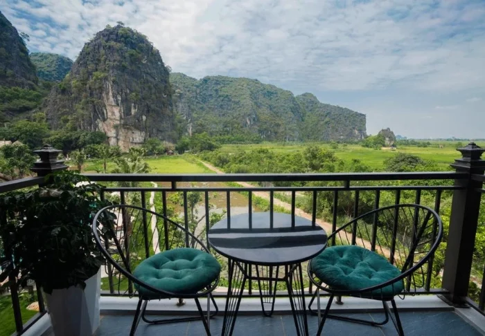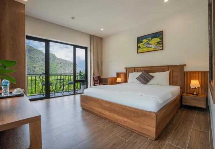 Tam Coc Peaceful Nature är ett nyare hotell från 2025 som ligger mitt i Tam Cocs karakteristiska landskap i Ninh Binh. Hotellet omges av gröna fält och ikoniska kalkstensberg som reser sig dramatiskt över omgivningarna. Här bor du lugnt och avskilt men ändå nära livet i Tam Coc, och du kan promenera till centrum på cirka 12 minuter.