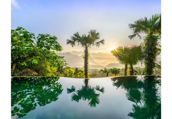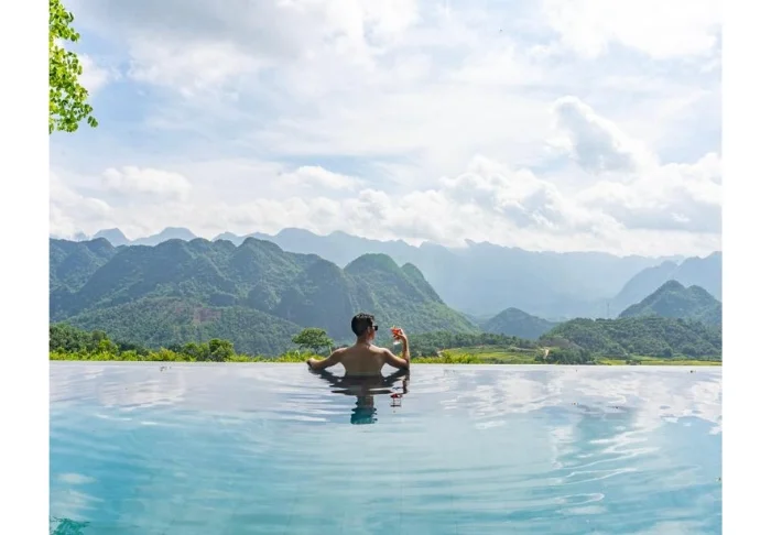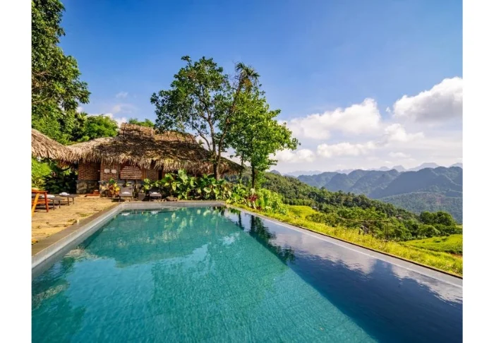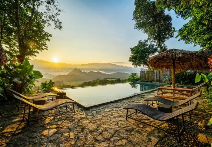 Resorten har två infinity-pooler som ligger på bergssluttningen med utsikt över risterrasserna och dalen. Här kan du ta ett dopp efter en dag på stigarna i naturreservatet eller slå dig ner vid poolkanten och njuta av utsikten över bergen. Den ena poolen ligger nära restaurangen och fungerar som en naturlig samlingsplats under dagen, medan den andra ligger lite mer avskilt och ger möjlighet att hitta ett lugnt hörn med utsikt över landskapet. Vid poolområdet finns även en bar där du kan beställa en drink eller en kopp kaffe.