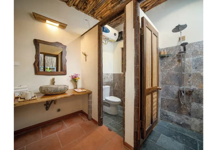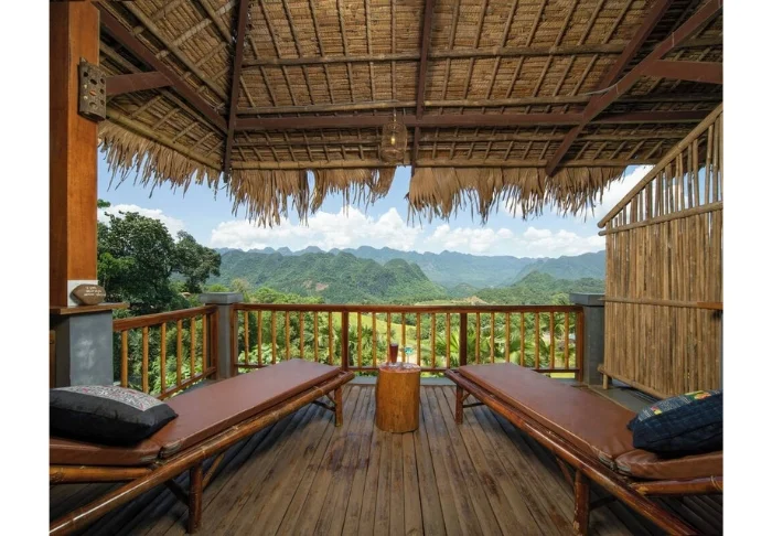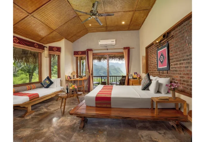 Du bor som standard i ett Deluxe Valley View-rum på 32 m² med utsikt över några av områdets vackraste risfältsterrasser. Rummet är byggt i trä och bambu, och både väggar och tak är klädda i naturliga material som speglar Pu Luongs traditionella byggnadsstil. Gardinerna är dekorerade med broderade detaljer sydda av lokala thaikvinnor, vilket ger rummet en personlig känsla. Här finns en kingsize-säng samt en extrasäng med plats för två vuxna och ett barn. Från balkongen kan du njuta av morgonsolen med en kopp vietnamesiskt kaffe medan dalen långsamt vaknar. Rummet har dessutom aircondition, minibar, vattenkokare samt badrum med dusch och varmvatten.