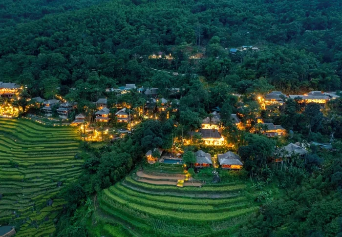 Pu Luong Retreat ligger i Pu Luong naturreservat. Anläggningen breder ut sig längs en bergssluttning med utsikt över pittoreska risfält, dalar och små byar, och här bor du omgiven av natur långt bort från storstadens tempo.