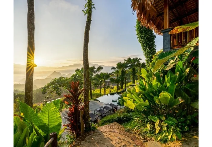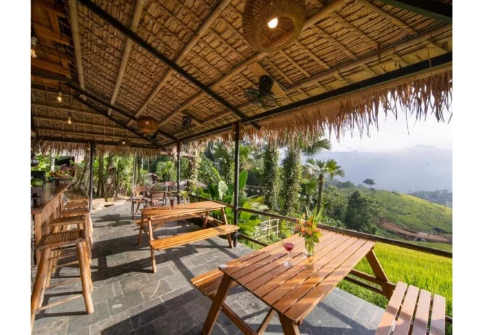 Här kan du promenera bland de tropiska bambuhusen, koppla av och njuta av utsikten över risfälten, de vackra trädgårdarna och de storslagna bergen. Du kan njuta av samma utsikt medan du äter frukost på balkongen eller i resortens utomhusrestaurang.