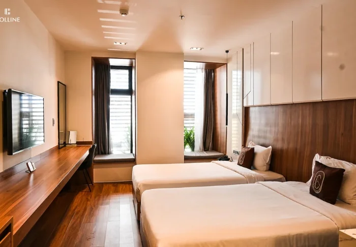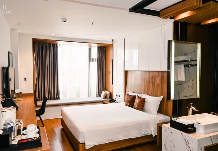 Hotellet förenar modern design med vietnamesiska inslag och skapar en inbjudande miljö för dig som vill ha hög kvalitet utan att bo mitt i staden.
