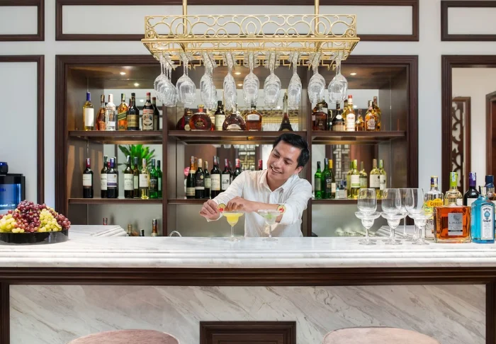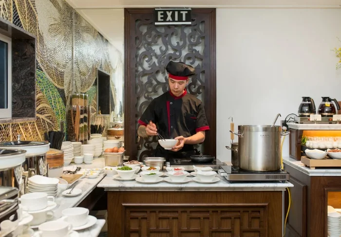 När hungern gör sig påmind har du flera alternativ på hotellet. Restaurangen serverar både vietnamesiska rätter och internationella klassiker, och i hotellets bageri kan du plocka upp nybakat bröd, kakor eller en god kopp kaffe. Senare på dagen kan du slå dig ner i lobbybaren med en drink innan du ger dig ut i staden igen, där ännu fler smakupplevelser väntar runt hörnet.