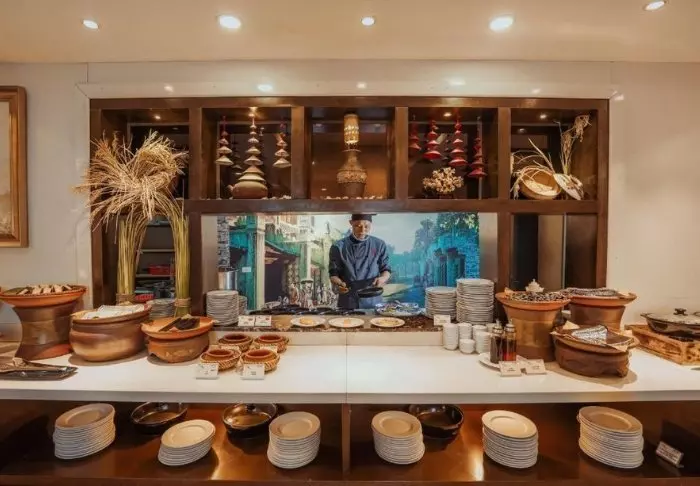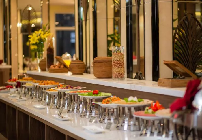 Hotellets restaurang, Mekong Medley Restaurant, serverar dagligen frukost, lunch och middag som buffé och erbjuder även à la carte-meny med både klassiska rätter från Mekong och internationella favoriter. Som något extra har resorten ett eget European Bakery & Dessert Corner, där det bakas färskt bröd, franska pajer och utsökta desserter varje dag.