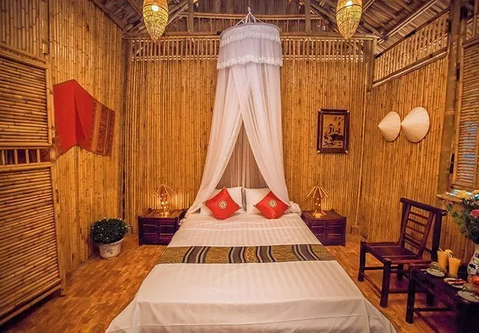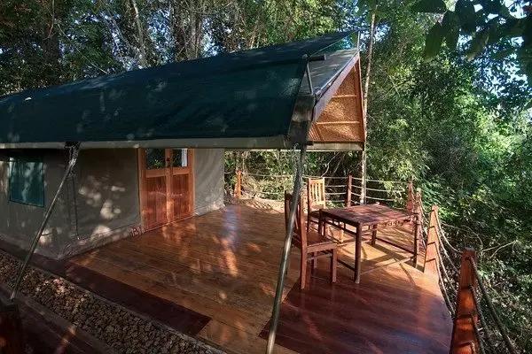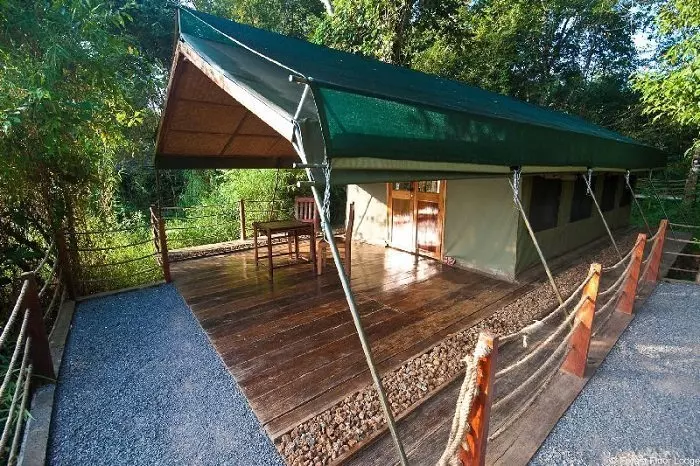 Övernattning försiggår i lyxtält som är specialdesignade till tropikerna. Tälten är upphöjda över marken på en plattform byggd av trä och med utsikt över Ben Cu. Tälten är anslutna med lodgens huvudbyggnad via ett nätverk av gångbroar. Alla tält har antingen dubbelsäng eller två enkelsängar, eget badrum, minibar, fläkt och aircondition. Framför tältet finns en härlig balkong med ett par stolar där man kan njuta soluppgången över floden och höra gibbonaporna tjattra.
