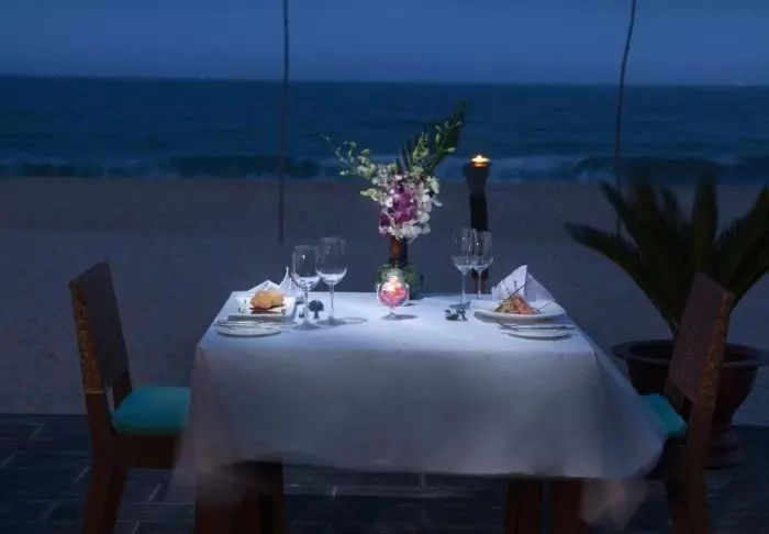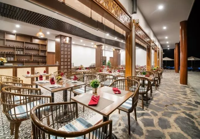 När hungern gör sig påmind kan du besöka hotellets restaurang, The Spice House, där menyn bjuder på vietnamesiska specialiteter och medelhavsinspirerade rätter tillagade på färska råvaror. På kvällen kan du avrunda dagen i strandbaren The Malabar, som serverar cocktails, öl och klassiska drinkar i en avslappnad atmosfär där vågornas brus står för den finaste bakgrundsmusiken.