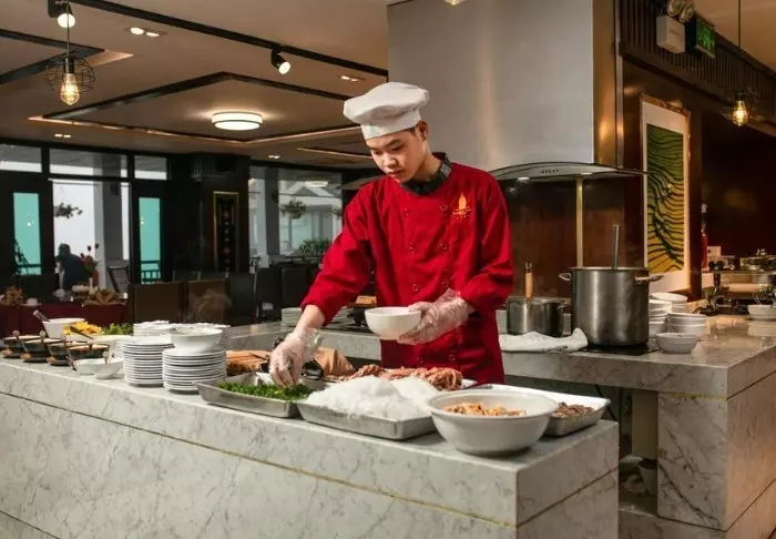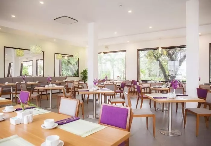 Hotellets restaurang serverar en rad läckra vietnamesiska rätter och internationella favoriter.