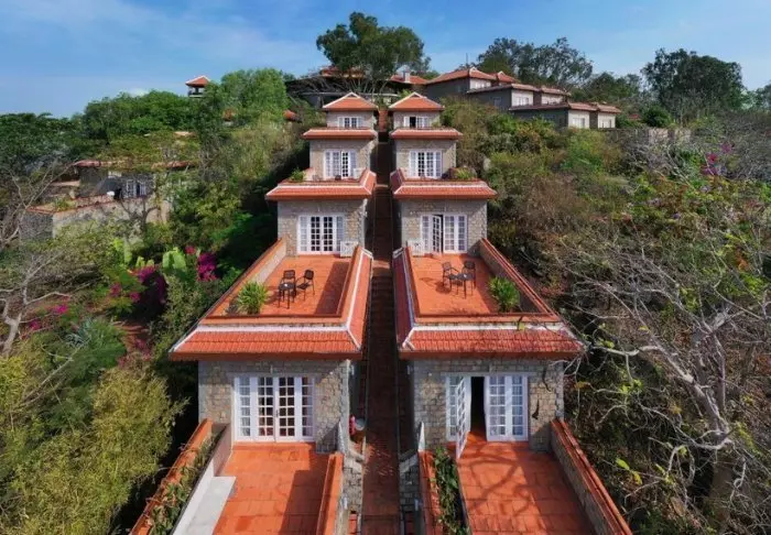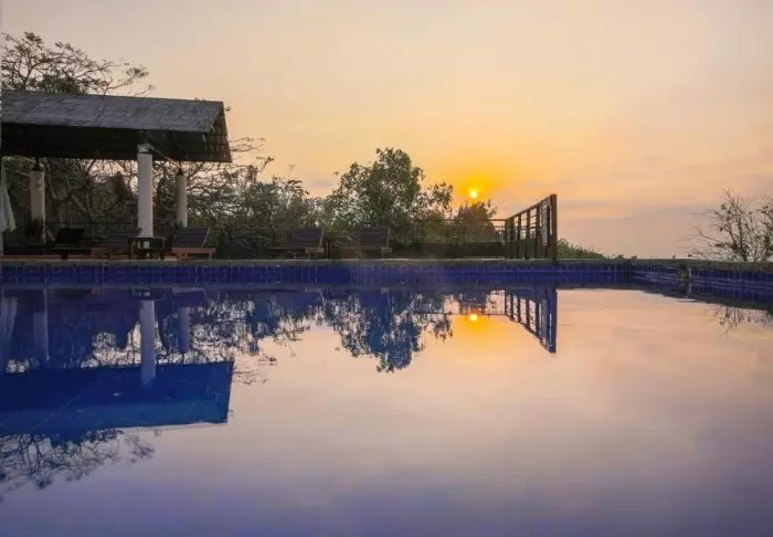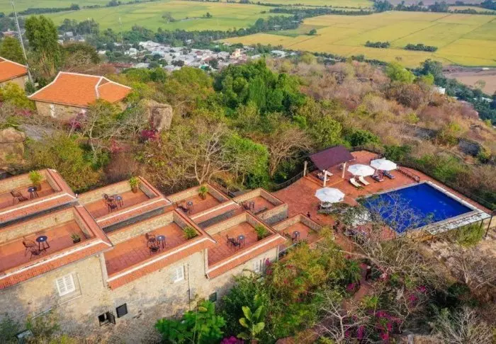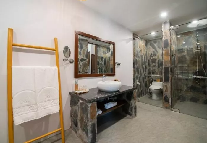 Här finns 26 bungalows som är byggda i sten och nästan helt smälter in i omgivningen på bergssidan. Alla rum är moderna med minimalistisk inredning, som till största delen består av sten och trä. Färgerna är dämpade och passar till kontrasterna utanför. Alla rum har eget badrum och toalett, tv, minibar, hårtork, te- och kaffefaciliteter samt tillgång till terrass. Både soluppgången och solnedgången är magiska från hotellet. Lodgen har pool och egen restaurang.