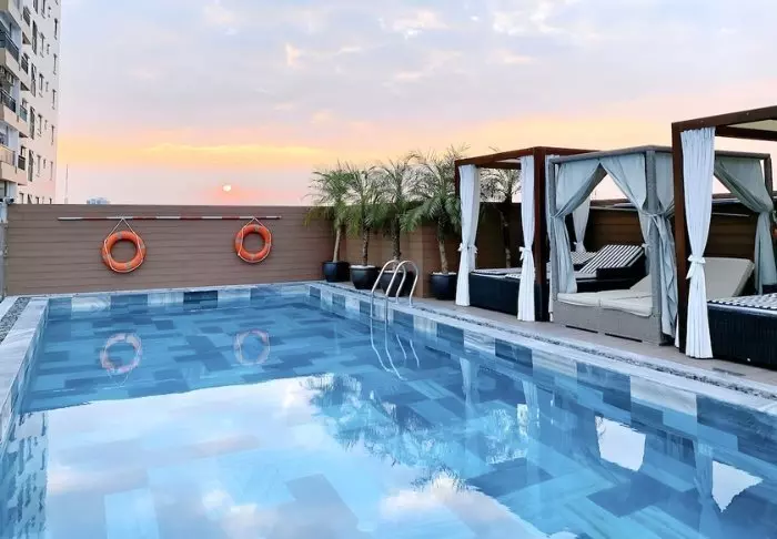 Hotellets arkitektur är elegant och skapar en välkomnande och avkopplande atmosfär. Du kommer direkt att känna dig som hemma i den lyxiga miljön, där du kan koppla av på den vackra takterrassen med sin imponerande utsikt över staden eller ta ett dopp i den uppfriskande poolen som inbjuder dig att ta en paus från stadens pulserande liv utanför.