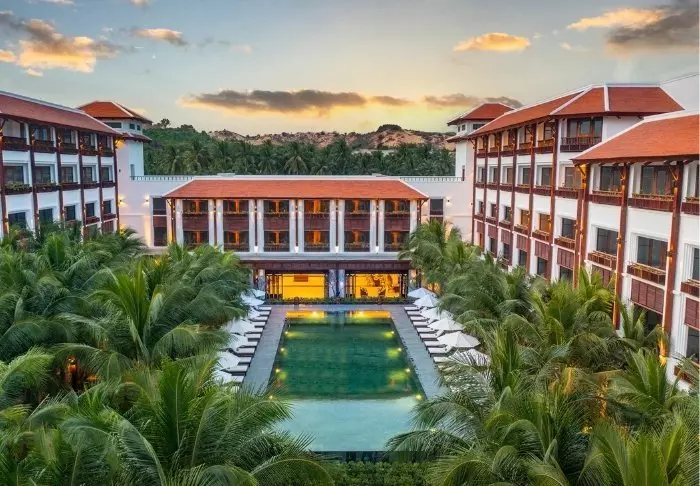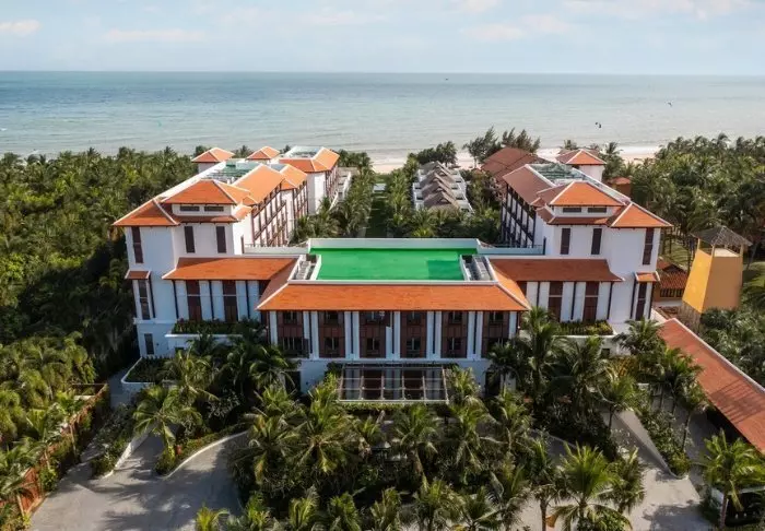 The Anam Mui Ne Hotel ligger direkt på stranden med utsikt över det glittrande azurblå havet i södra Vietnam. Med Mui Nes berömda sanddynor på den ena sidan och dess honungsfärgade sandstrand på den andra kan läget knappast bli mycket bättre.