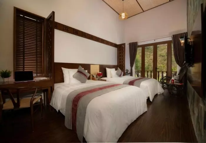 Hotellets 104 rum är rymliga och elegant inredda i traditionell vietnamesisk stil med mörka trämöbler. Rummen är utrustade med allt du behöver för en behaglig vistelse, härunder wifi, aircondition, värdeskåp, tv och sittområde. Badrummet har dusch och bjuder på gratis toalettartiklar, hårtork, morgonrock och tofflor. De flesta av rummen har dessutom stora fönsterpartier, som bjuder på poetiska utsikter över Sapas landskap.