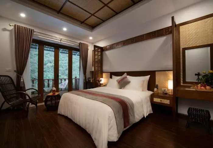 Tam Coc Garden Resort är en liten trivsam resort med enbart 16 rum. Alla rum är stilfullt och rustikt inredda och smälter perfekt in i omgivningarna tack vare genomgående användning av naturmaterial såsom trä, sten och bambu. Rummen är utrustade med aircondition, wifi, minibar, myggnät, värdeskåp, yogamatta samt te- och kaffefaciliteter. Badrummet bjuder på både badkar och dusch samt gratis toalettartiklar, morgonrock, tofflor och hårtork. Varje rum har dessutom en egen terrass och vad är bättre än att starta morgonen här och se morgonsolens strålar omfamna de omkringliggande bergen och risfälten? Är du van vid att utöva yoga kan du istället ta yogamattan under armen och hitta din favoritplats på resorten där du helt ostörd kan få kroppen i balans medan solen långsamt går upp.
