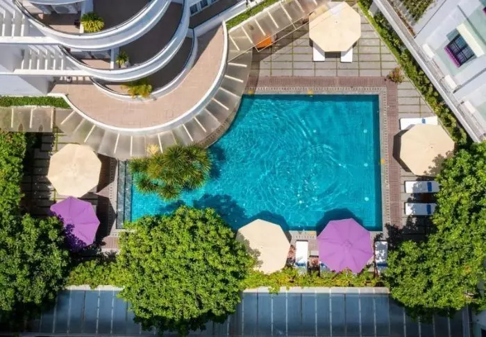 Blue Ocean har en privat strand med solstolar och parasoll, och här kan du njuta av utsikten över det turkosa havet. Det är en hel del vågor på Mui Ne, så om du inte vill simma i havet om det inte är lugnt, har resorten som tur är också ett inbjudande poolområde där du kan ta ett uppfriskande dopp och koppla av med en bra bok.