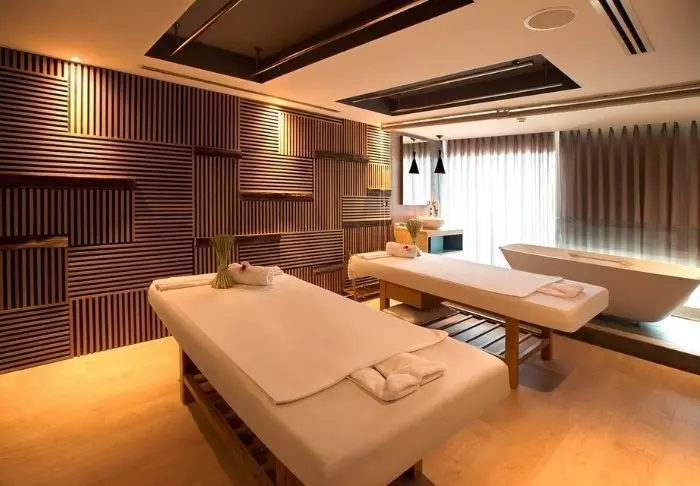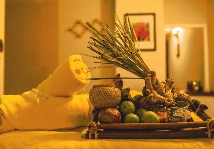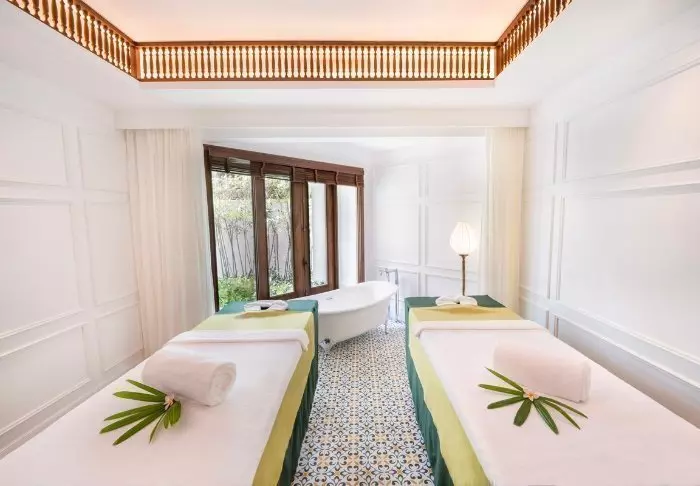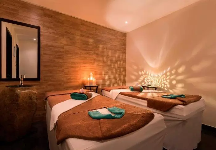Efter en härlig dag i solen kan du skämma bort dig själv med en avkopplande behandling på spaavdelningen, som är uppdelad i små paviljonger med avskärmning.