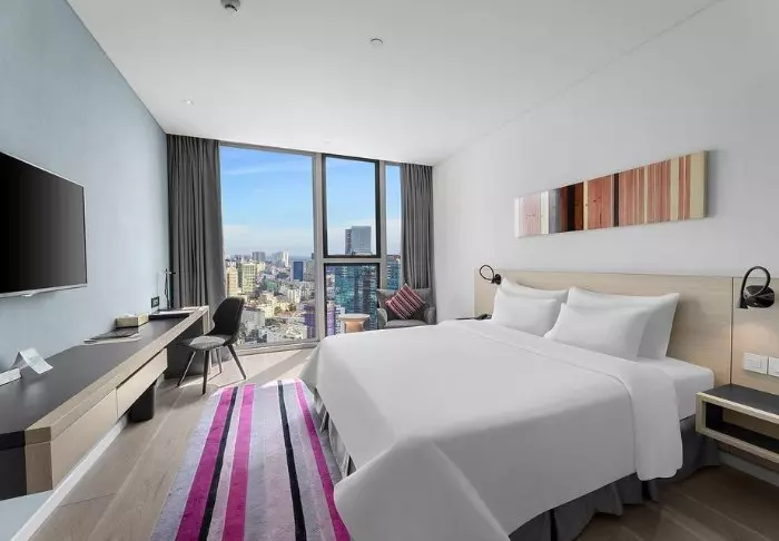 Hotellet erbjuder även en utomhuspool med utsikt över staden samt ett gym för dig som vill hålla dig aktiv under vistelsen.