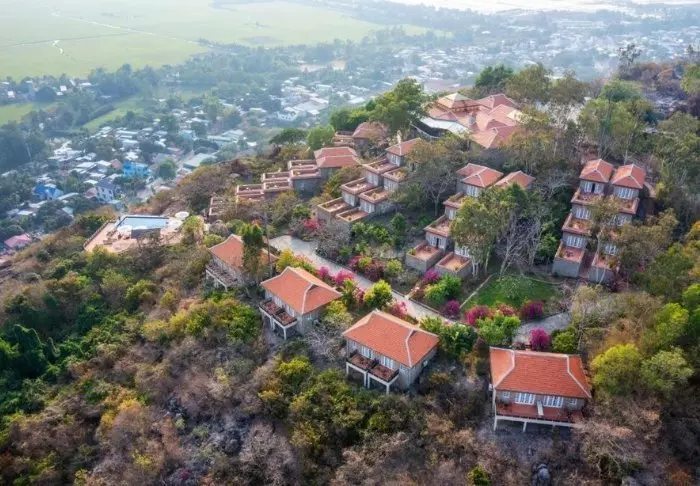 En bit upp på bergssidan av Sam-berget ligger hotellet Victoria Nui Sam Lodge. Här har du den vackraste utsikten över Mekongdeltat med gröna risfält, kanaler och berg i bakgrunden mot gränsen till Kambodja.