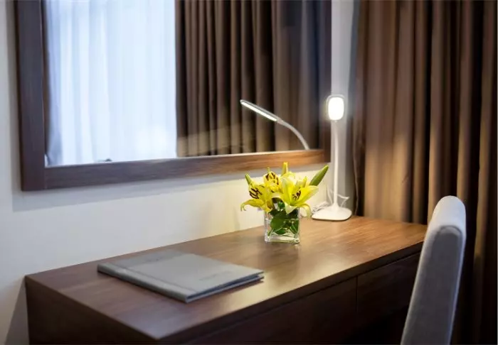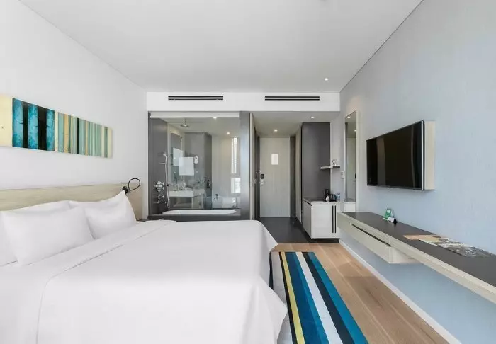 Du bor som standard i ett deluxe-rum med stora fönster och en varm inredning med mörkt trä, dova färger och mjuka textilier. Rummet har antingen en dubbelsäng eller två enkelsängar, eget badrum med dusch, toalettartiklar och hårtork. Dessutom finns aircondition, värdeskåp, wifi, TV, vattenkokare och flaskvatten. Minibaren är välfylld och ingår i vistelsen.