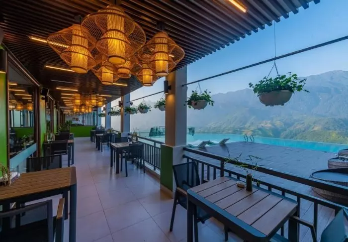 I hotellets restaurang säkerställer de duktiga kockarna att det alltid finns ett stort urval av läckra rätter, som är tillagade med lokala råvaror. Här serveras både asiatiska och västerländska rätter med utsikt över Sapas böljande berg.