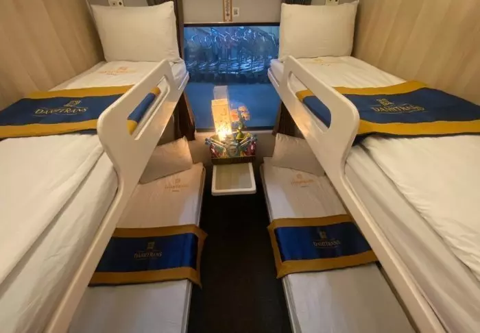 Nattåget Damitrans kör dig från Hanoi till Da Nang. Du sover i en delad sovkupé med plats för totalt 4 personer. Tåget stannar vid flera stationer längs vägen innan du är framme i Da Nang.