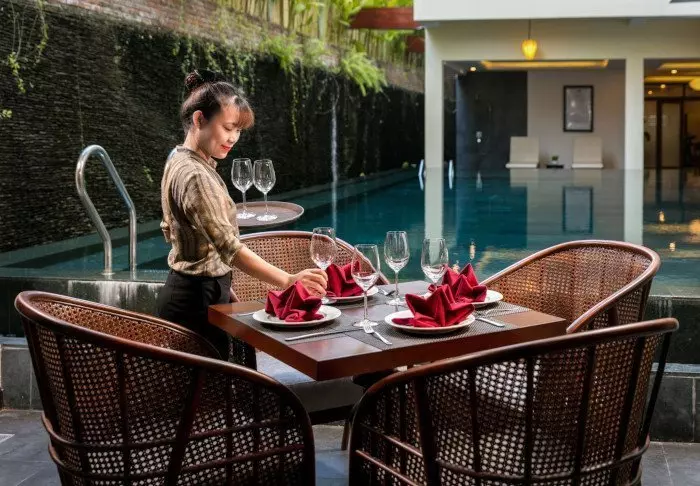 Hotellets restaurang, Cau May, serverar både asiatiska och västerländska rätter. Dessutom har de ett spännande utbud av viner och drinkar, som blandas av deras erfarna bartendrar.