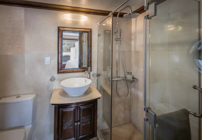 Du övernattar i en Deluxe Ocean View-hytt på första däck med stora fönster som öppnar upp till buktens utsikt, så att du kan vakna till solens första strålar och falla i sömn till ljudet av vågornas skvalp. Hytten är 20 kvadratmeter stor och inredd med dubbelsäng eller två enkelsängar, aircondition, minibar, tv och värdeskåp samt eget badrum med dusch. Den rymmer två vuxna och ett barn.