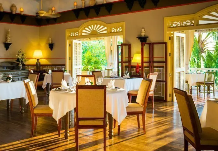 Resorten har två restauranger. Förutom huvudrestaurangen The Pepper Tree finns även restaurangen Le Jardin, en utomhusrestaurang med en fantastisk utsikt över havet. Här kan du avnjuta lunch, eftermiddagssnacks eller en drink i den vackra solnedgången. Efter solnedgången öppnar loungebaren där du kan beställa många färgglada drinkar.